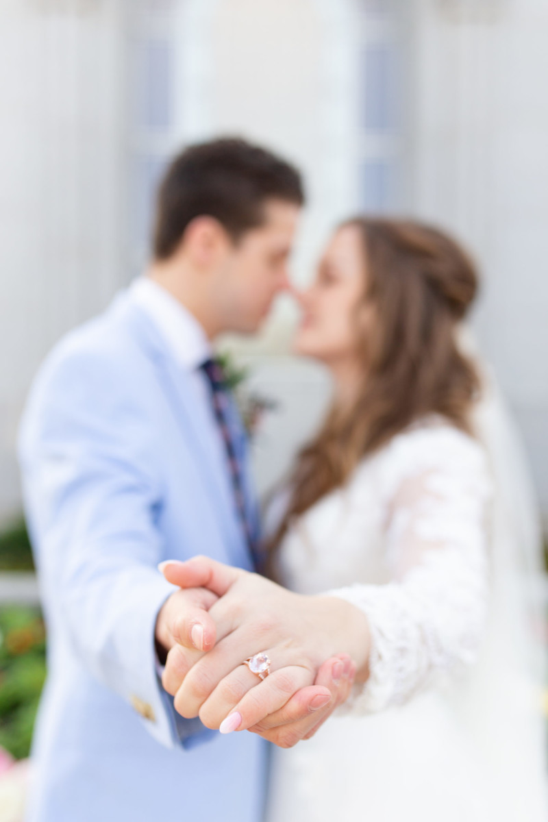 Melynne, who’s a Disney fanatic, showed up in a wedding gown fit for a princess. She had bright pink shoes hidden under her dress that matched her flowers perfectly. And to compliment the pink, Jase wore a baby blue suit. They looked like they’d walked straight out of a Disney picture book!